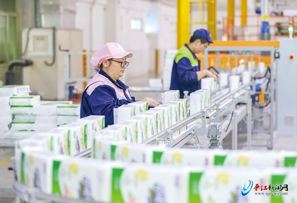 面对各种挑战,恒安集团始终保持稳定发展。图为恒安生产基地,生产线上一派繁忙景象。 记者 董严军 摄