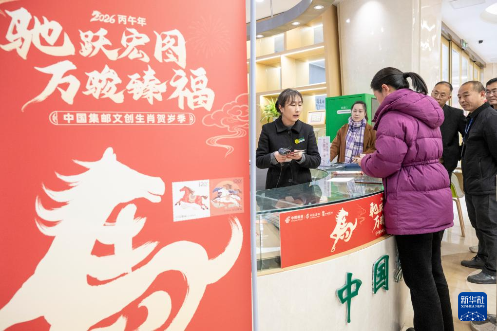 1月5日,中国邮政发行《丙午年》特种邮票一套2枚,面值均为1.2元,图案分别为“驰跃宏图”和“万骏臻福”。(新华社发 徐火炬摄)