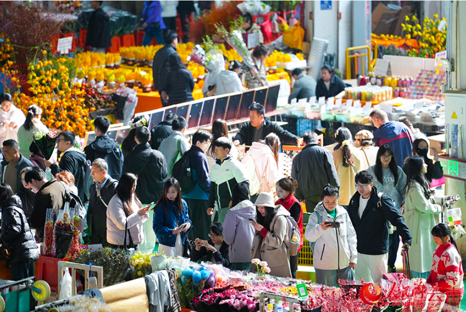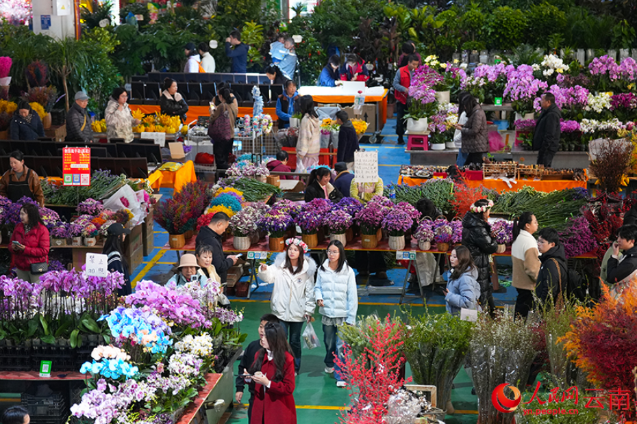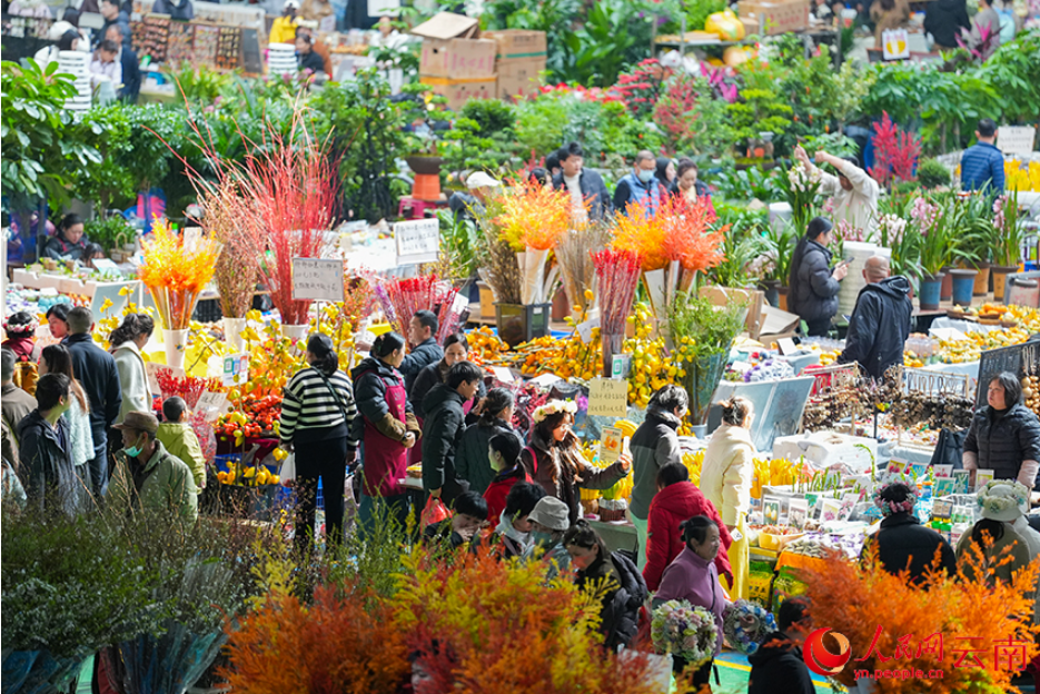 1月1日,新年伊始,暖阳高照,有着“亚洲花都”美誉的昆明斗南花市内花香四溢、笑语盈盈。数万市民和游客循着花香而来,在缤纷花海中选购鲜花、打卡特色景观、感受节日氛围,处处洋溢着新年的喜庆与活力。(人民网 记者李发兴)