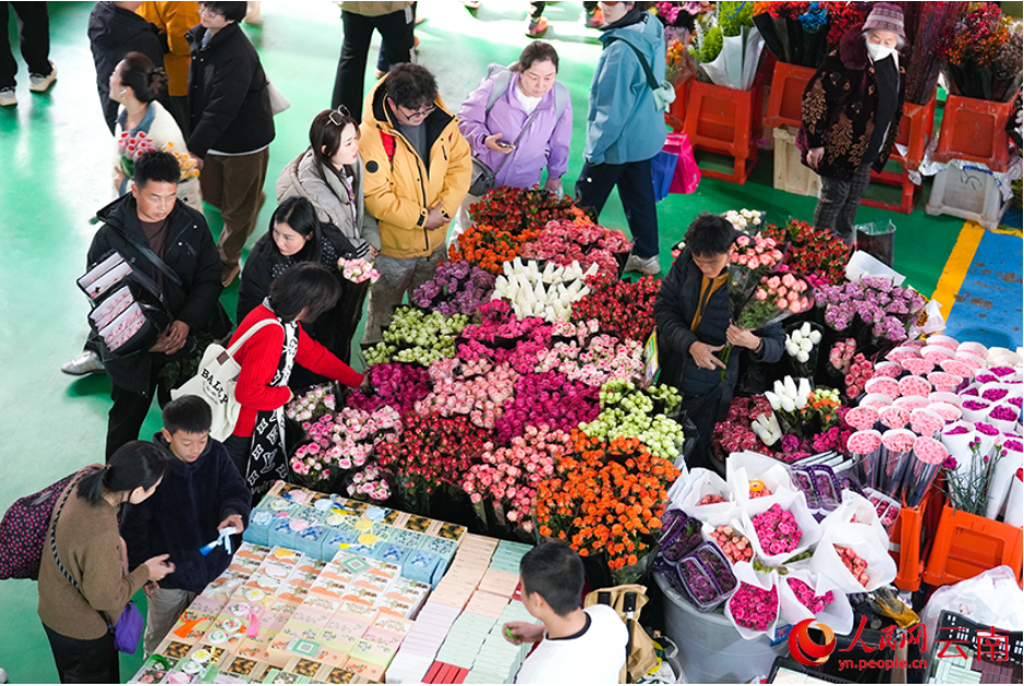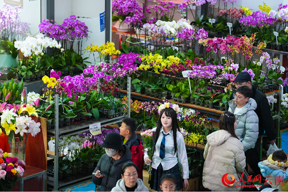游客和市民在昆明斗南花市选购鲜花。人民网记者 李发兴摄
