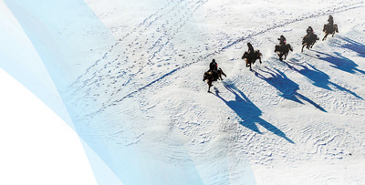“海东青”骑警队骑警在内蒙古呼伦贝尔市陈巴尔虎旗的雪原上巡逻。 |