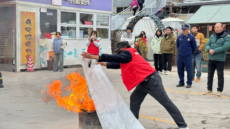 在灭火器灭油盆实操环节,消防宣传员现场详细讲解了常见灭火器的结构原理、操作步骤及适用场景,并演示了灭火毯等各类消防设备的正确使用方法。同时教大家如何辨别灭火器真伪,提醒参训人员定期检查商铺内的消防设施,及时清理杂物,杜绝私拉乱接电线等行为,切实将火灾隐患消灭在萌芽状态。