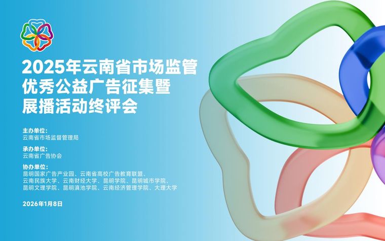 昆明信息港讯 记者李红鸾 2026年1月8日,云南省市场监督管理局主办、云南省广告协会承办的“2025年云南省市场监管优秀公益广告征集暨展播活动”终评会,在昆明国家广告产业园顺利举行。活动以“汇聚广告力量,点亮云品之光”为主题,旨在发挥公益广告在品牌建设、诚信文化弘扬、科学消费引导、市场秩序规范中的积极作用,推动市场监管文化建设与事业高质量发展。