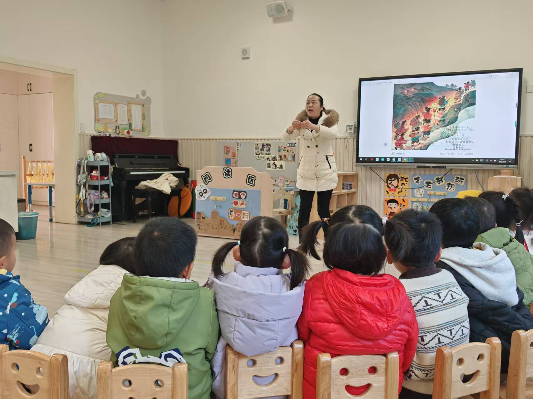 活动当天,最引人注目的环节当属家长志愿者希宝妈妈带来的传统文化绘本分享。化身“故事大王”的希宝妈妈,以经典绘本《年兽来了》为蓝本,用生动活泼的语言、形象传神的肢体动作,将年兽传说娓娓道来。从年兽出没时的恐惧场景,到人们发现“红、光、响”可驱赶年兽的智慧,再到家家户户贴春联、放鞭炮、守岁迎新的热闹画面,精彩的情节讲述让孩子们全神贯注,不时跟着模仿故事中的动作,现场欢声笑语此起彼伏。