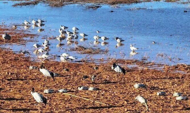 随着冬季来临,会泽黑颈鹤国家级自然保护区迎来大批越冬候鸟。近期,保护区水位为20年来最高,给黑颈鹤栖息带来挑战。保护区通过科学管理、技术赋能,保障了候鸟栖息环境,更实现越冬鸟类数量稳步增长,黑颈鹤数量达1300余只,创历史新高。