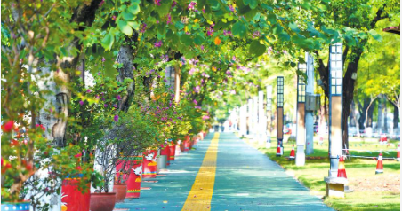 美化改造后的元阳县滨河路段人行道。