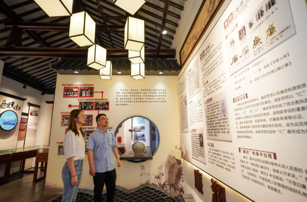 2024年7月4日,参观者在苏州市吴江区平望镇廉洁教育基地莺湖廉园内参观。新华社记者 李博 摄