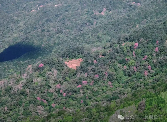 若登上青云山顶,极目远眺,便会发现油松岭樱花的另一番韵味。些许“老品种”的野生樱花,散落在连绵的山峦之间,它们没有人工培育的整齐划一,却多了一份自然生长的野趣。有的扎根在悬崖峭壁之上,有的隐匿在密林深处,星星点点的花朵,如同夜空中的繁星,点缀着一座座青山。这些野生樱花,是最珍贵的自然馈赠,它们见证了油松岭的岁月变迁,也为这片土地增添了一份原始而纯粹的美。
