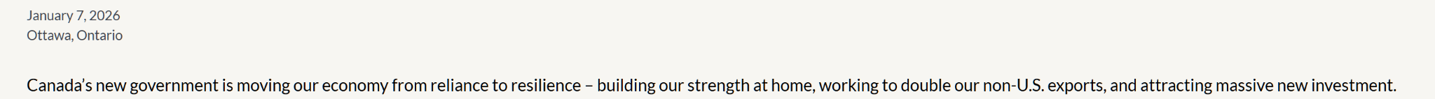 加拿大新政府正在推动本国经济从依赖走向韧性——增强国内实力,努力使对美国以外的出口增长一倍,并吸引大量新投资。”