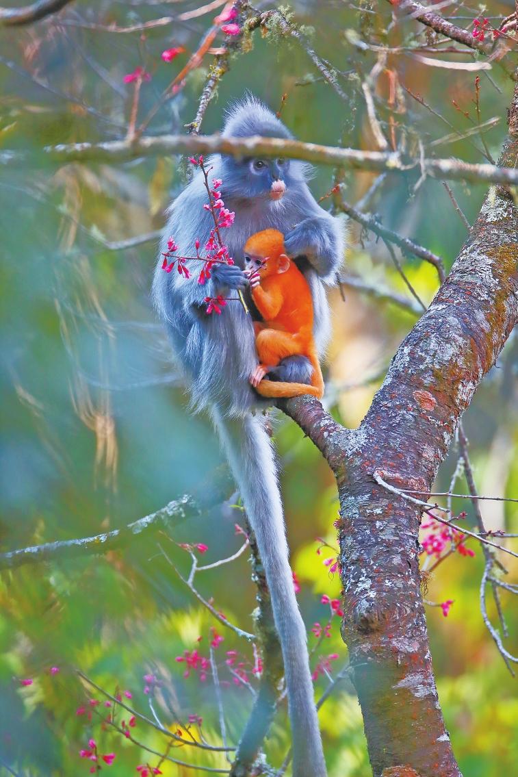 印支灰叶猴主要分布在中南半岛及我国云南南部地区,是我国重点保护的珍稀灵长类动物,其保护成效正逐渐显现。最新调查数据显示,在景东无量山栖息着61群3000多只印支灰叶猴,与10年前相比,其种群数量增加了18群1000多只。