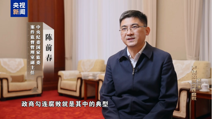 中央纪委国家监委案件监督管理室副主任 陈前春:当前腐败存量尚未清除,腐败增量还时有发生,表现形形色色,政商勾连腐败就是其中的典型。纪检监察机关坚持把严惩政商勾连腐败作为攻坚战重中之重,坚决查处政治问题和经济问题交织的腐败。