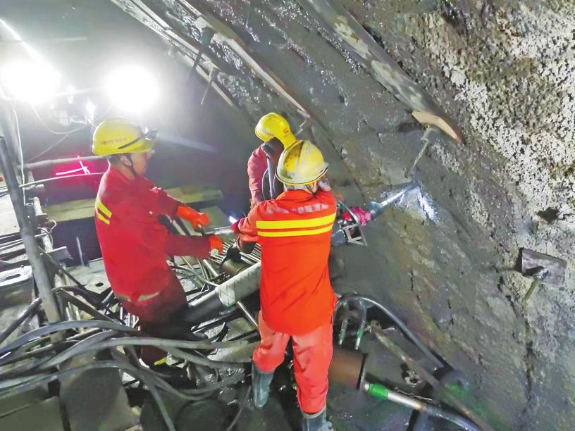 李俊卯与工人一起打设锁脚锚杆,对置换的拱架加固。问到面对香炉山隧洞软岩破碎如何处理时,他说,“担任班组领头人、排头兵,我深知责任重大,始终坚守一线为掘进施工奉献自己的力量”。