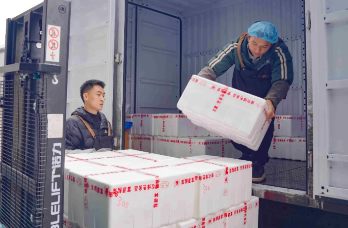 “今天订单大概1600多单,属于正常范围,爆单时能达4000多单,我们的回购率还是比较高的。”富源山妹农产品开发有限公司工作人员梅冬婷一边核对订单数据,一边向记者介绍,说话间,快递运输车已停靠在车间门口,准备将装满酸菜猪脚的包裹发往全国各地。直播间里,主播手持产品讲解:“加热10分钟就能吃,酸辣鲜香,还原地道富源味!”网友互动热烈,订单提示音接连响起,形成“生产+直播+发货”高效闭环。据了解,目前企业已与300余名省内网红及8名自主培养主播合作,壮大“云端”销售力量。