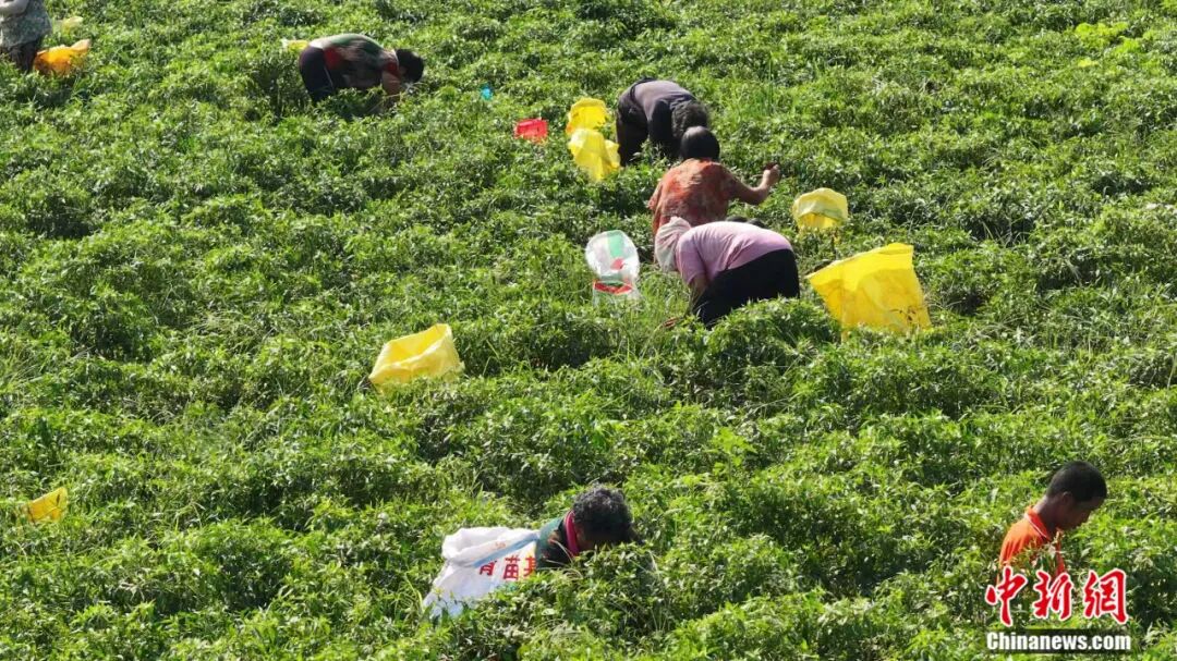 冀南平原上,连片的辣椒田如红色海洋翻涌——细长的羊角椒紧紧扒着枝头荡来荡去,油亮的皮肤晒得通红。