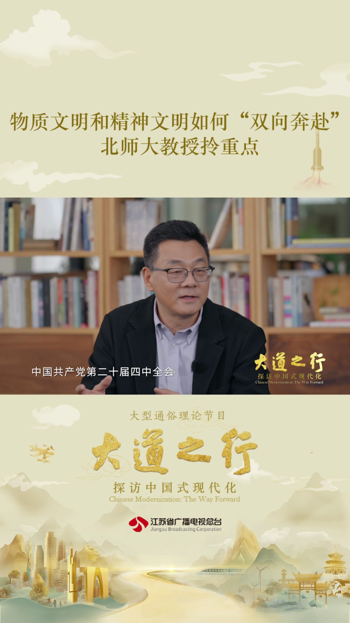 物质文明与精神文明,犹如车之两轮、鸟之双翼,共同推动中国式现代化滚滚向前。物质文明是精神文明的基础,精神文明引领物质文明的发展。如何理解“物质文明和精神文明相协调的现代化”?北京师范大学艺术与传媒学院副院长杨乘虎提出,在发展过程中,我们既要物质富足,也要精神富有,中国共产党第二十届四中全会给予了明确答案: