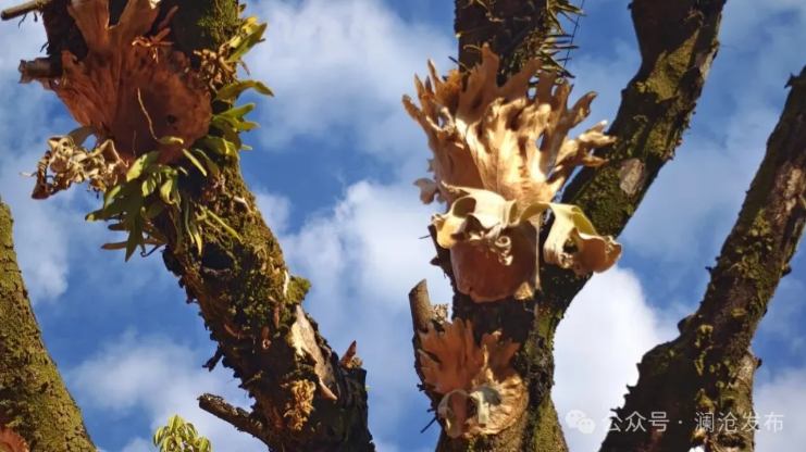 在澜沧县拉巴乡,多株自然生长的鹿角蕨,是当地独特生态环境的生动印证。它们在无人干预的自然状态下,悄然依附于拉巴乡街道的一棵行道树上生根发芽,凭借树干提供的支撑与周边适宜的气候条件,安然生长数载,成为拉巴独特的“街角奇景”。然而,随着时间推移,这棵寄主树木因老化逐渐枯萎,树干养分供给日益匮乏,野生鹿角蕨的生存状态岌岌可危。