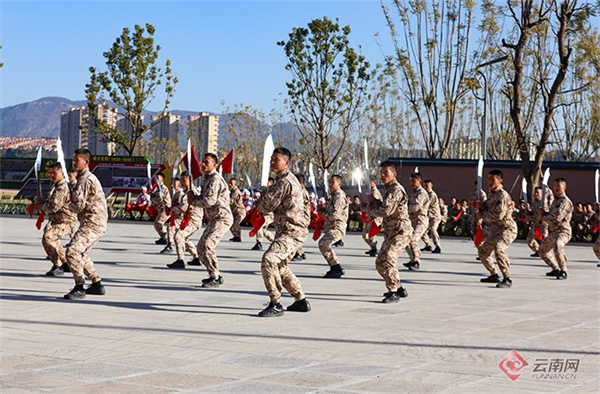 机关楼前的广场上,一场特色文化表演点燃了全场热情。大刀队队员身着戎装,手握钢刀,一招一式刚劲有力,尽显军人血性阳刚;陕西腰鼓队鼓声铿锵,红绸翻飞,浓郁的民族风情让现场气氛热烈爆棚;舞龙舞狮队龙腾跃、狮腾挪,气势如虹的表演赢得满堂喝彩。官兵与家属并肩而立,看着精彩的演出,掌声、欢呼声此起彼伏。这一刻,军营的铁血豪情与家庭的温暖柔情,在欢声笑语中完美交融。