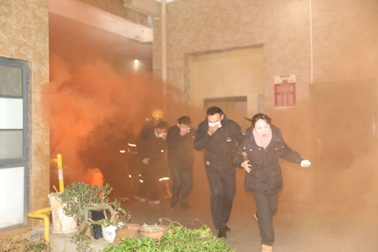 实战化演练环节中,模拟小区某栋二楼因用火用电不慎引发火灾,浓烟弥漫之际,物业微型消防站迅速响应,灭火组、疏散组、警戒组、救护组各司其职:灭火组利用灭火器、消火栓精准扑救初期火灾。疏散组逐层引导业主撤离并帮扶独居老人、儿童等特殊群体,警戒组封锁楼栋出入口,救护组在安全集结点清点人数,确保“不漏一户、不落一人”,整个过程紧张有序、处置规范,展现了过硬的应急协同能力。