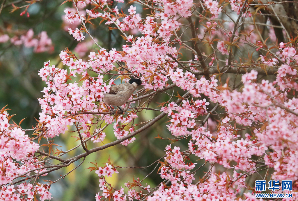 近日,云南省文山壮族苗族自治州丘北县八道哨彝族乡白脸山村的冬樱花悄然绽放。一簇簇粉红花团随风摇曳,引得鸟儿翩跹而至,或穿梭树梢,或驻足花丛,灵动雀跃的身影与烂漫樱景相映成趣,勾勒出一幅生机盎然的冬日画卷。(马卫忠)