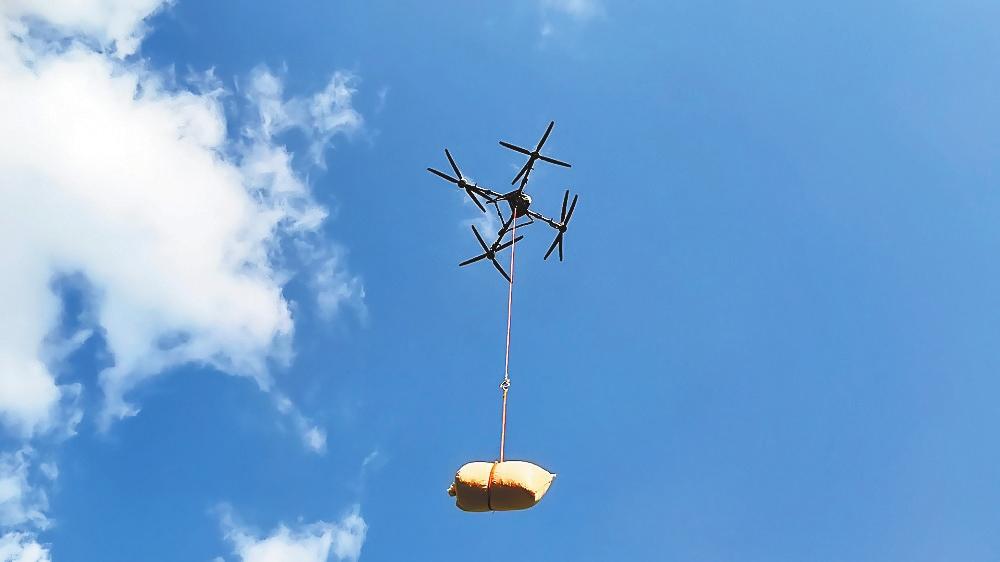 无人机吊运咖啡。