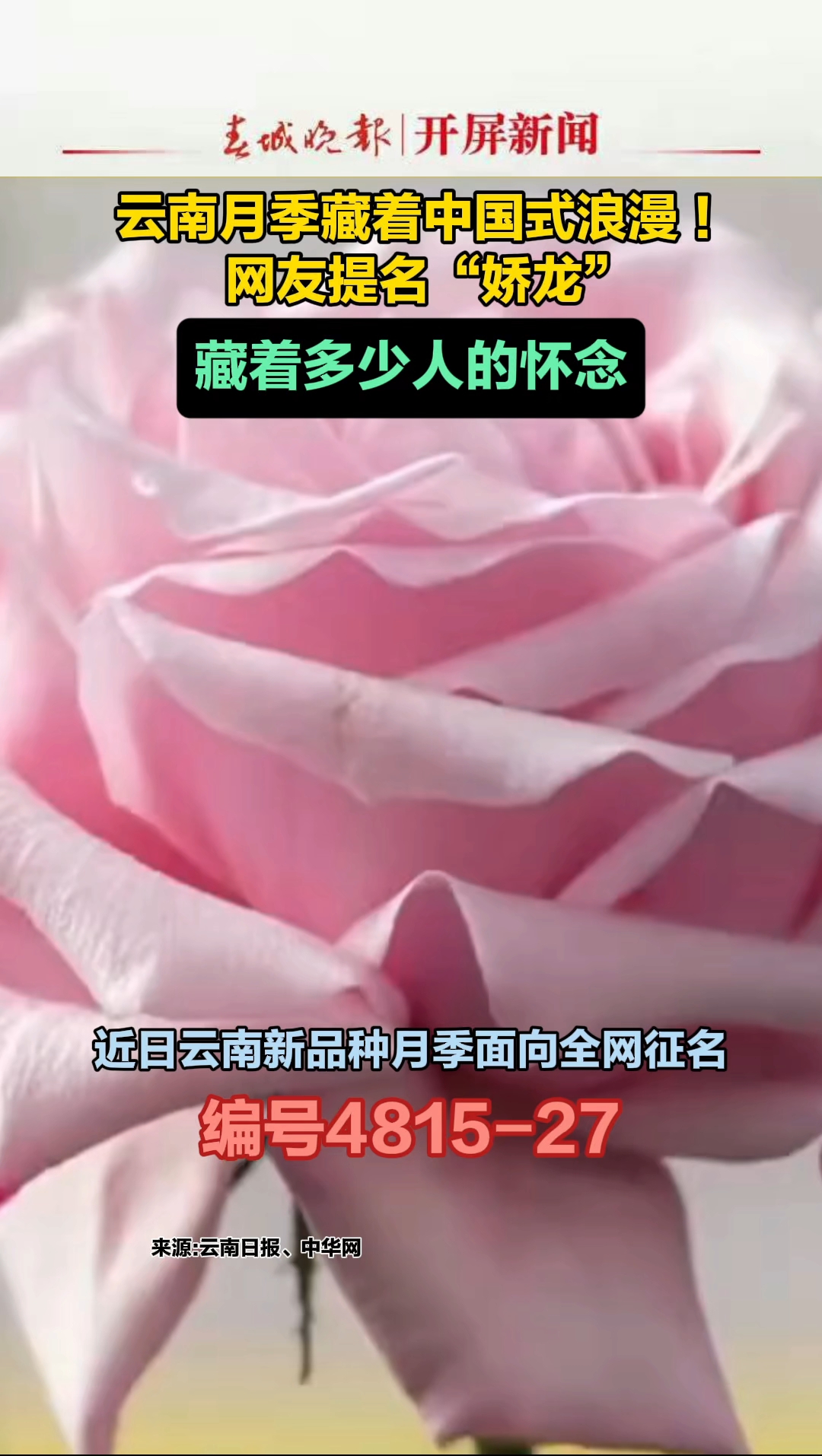 这几天,由云南日报、云南省农科院、昆明市总工会共同发起的为编号4815-27“中国风”月季征名的消息下面,全是这样的留言,不少云南网友提议就叫“娇龙”吧,纪念刚刚离世的贺娇龙。