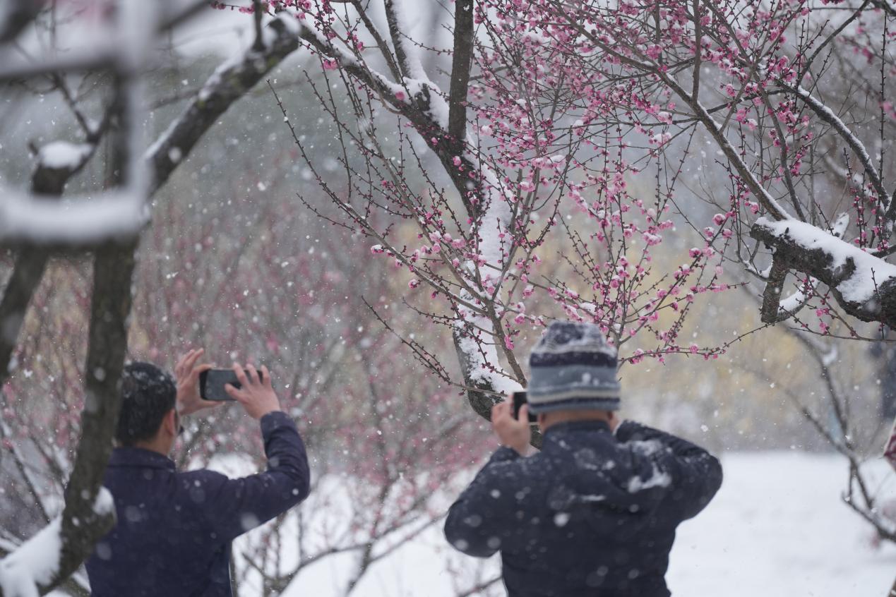白雪加梅花,让人诗兴大发。”市民王女士感慨,赏梅不只是看景,更是一种文化体验。武汉人赏梅,赏的是花的风骨,更是城市的文脉。