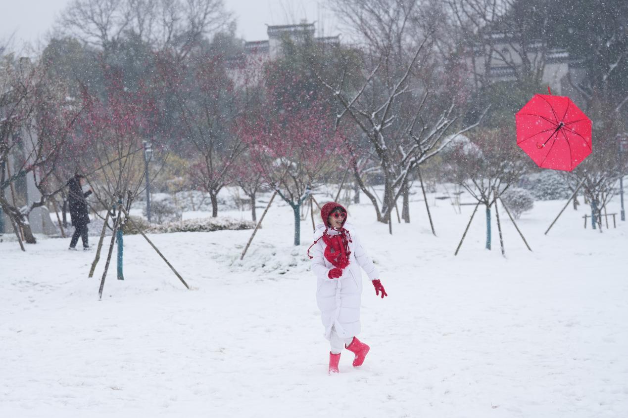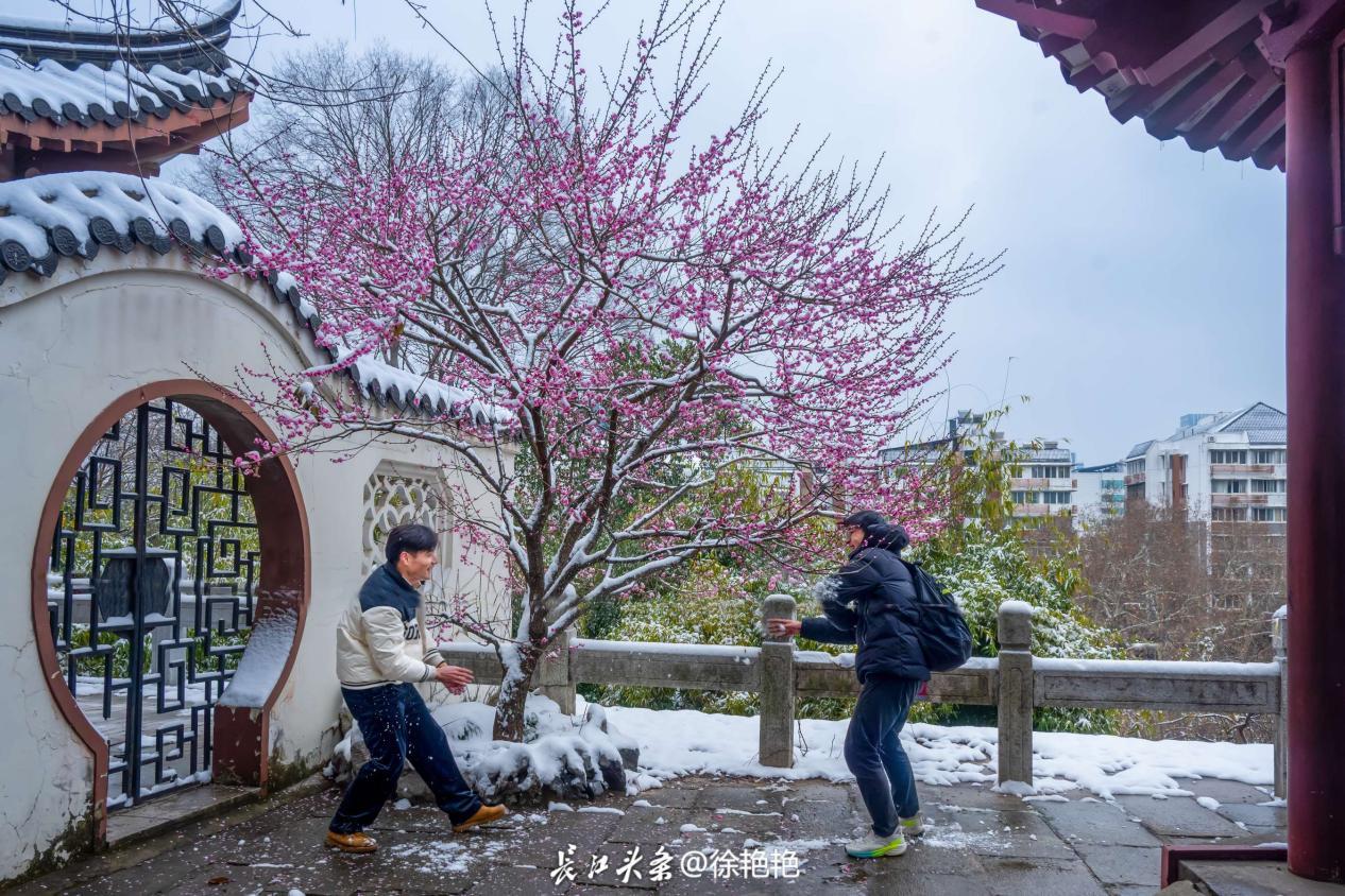 长江头条网友@猫尾林发文分享说:“武汉人的浪漫,藏在梅雪相依的景致里。”她告诉记者,每年冬天,和家人一起在江滩赏梅已成固定仪式。“看着孩子在梅树下奔跑,闻着淡淡的梅香,就觉得这是最踏实的幸福”。