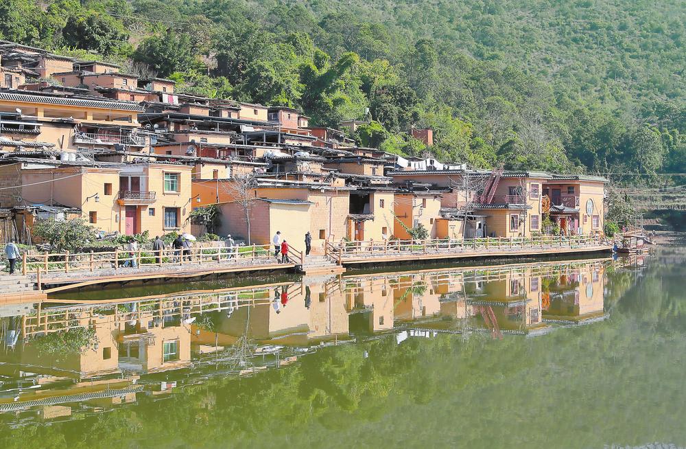 冬日暖阳下,元江哈尼族彝族傣族自治县洼垤乡坡垤村依偎在青山碧水间,古朴的彝家土掌房传统民居错落有致,八方游客慕名前来,参观滇南彝族传统民居,品味彝家美食,感受彝乡新韵。(云南日报 记者 杨峥摄)