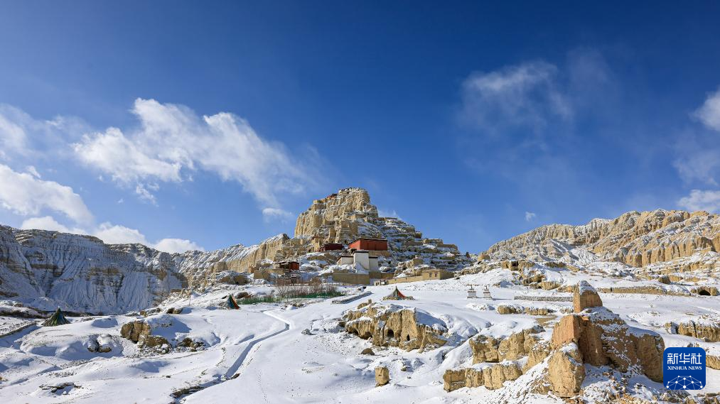 1月24日,西藏阿里地区札达县迎来降雪,全国重点文物保护单位古格王国遗址披上银装,呈现壮美雪景。(新华社 旦真次旦摄)