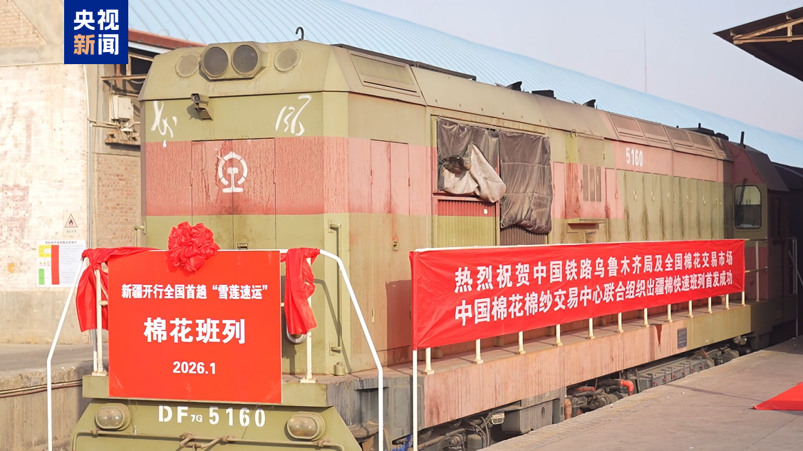 今天(1月26日),随着一列满载1395吨棉花的“雪莲速运”棉花班列从新疆阿克苏站鸣笛启程,前往山东滨州市小营站,标志着全国首趟棉花快速班列顺利开行,为推动新疆棉花棉纱产业发展、助力乡村振兴注入新动能。