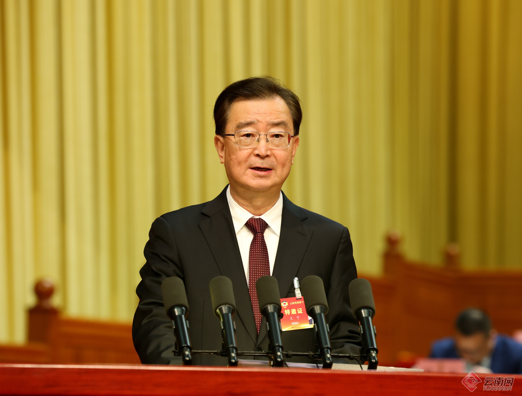 刘晓凯代表政协云南省第十三届委员会常务委员会向大会报告工作。记者 周灿 顾彬 胡妤雅 高吴双 摄