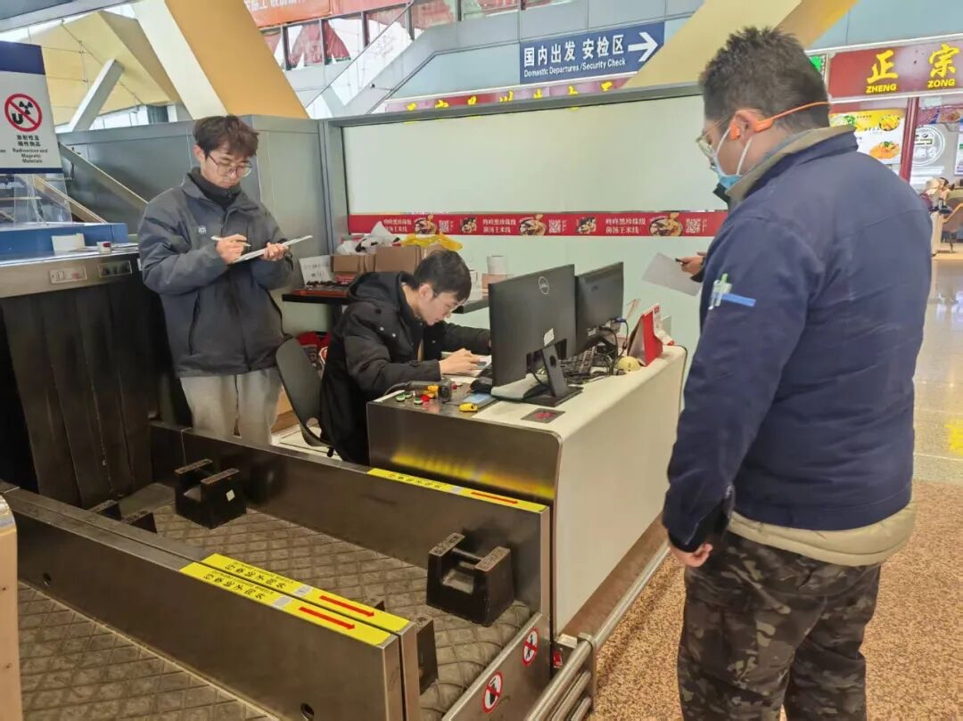 本次专项检查由昆明市市场监管局计量处牵头,联合滇中新区直管分局、中检西南计量有限公司,创新构建“市—区—技术机构—机场”四方联动工作机制。中检西南计量有限公司派出专业技术团队,携带标准砝码、辐射检测仪等专业设备现场开展计量检定与技术评估,确保检查工作科学、精准、高效,为春运期间机场计量秩序提供坚实技术支撑。通过资源整合、信息共享、快速响应,真正实现“横向到边、纵向到底”的全链条监管覆盖,织密织牢春运计量安全防护网。