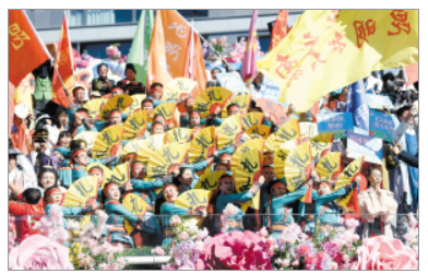 看台上的国风啦啦队为昆明队呐喊助威。