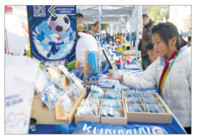 消费者购买滇超联赛纪念品。 本组图片记者赵伟摄