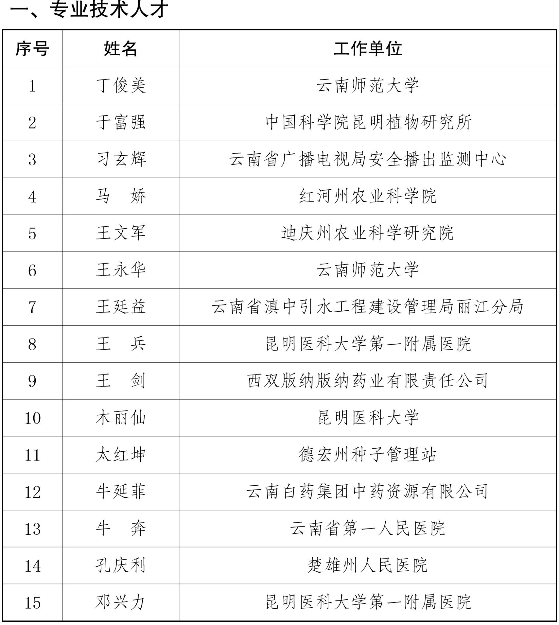 附件:2025年度享受云南省政府特殊津贴人员名单