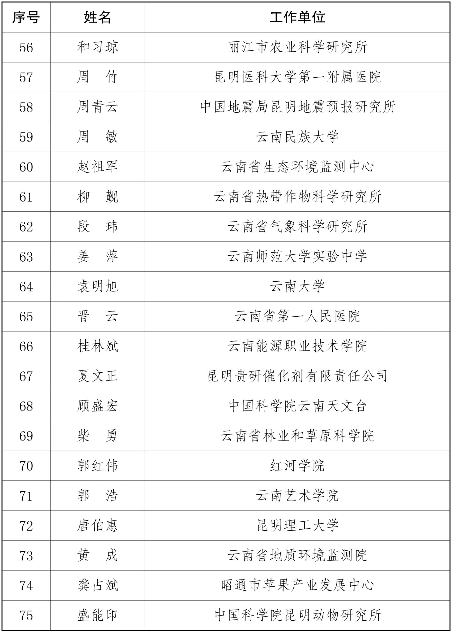 2025年度享受云南省政府特殊津贴人员名单
