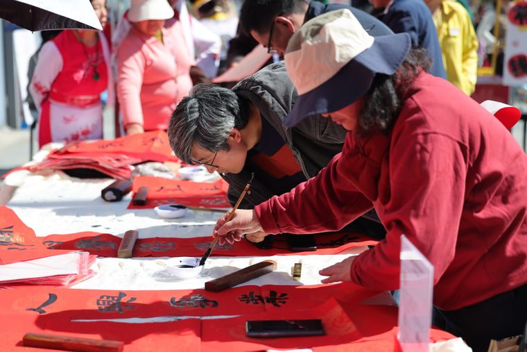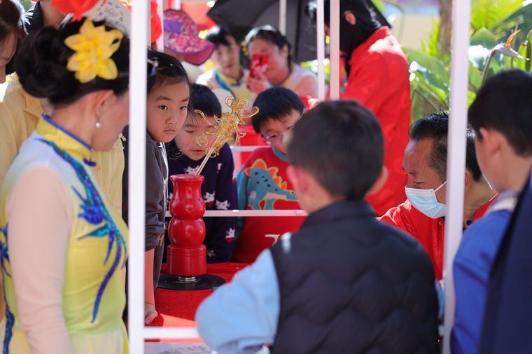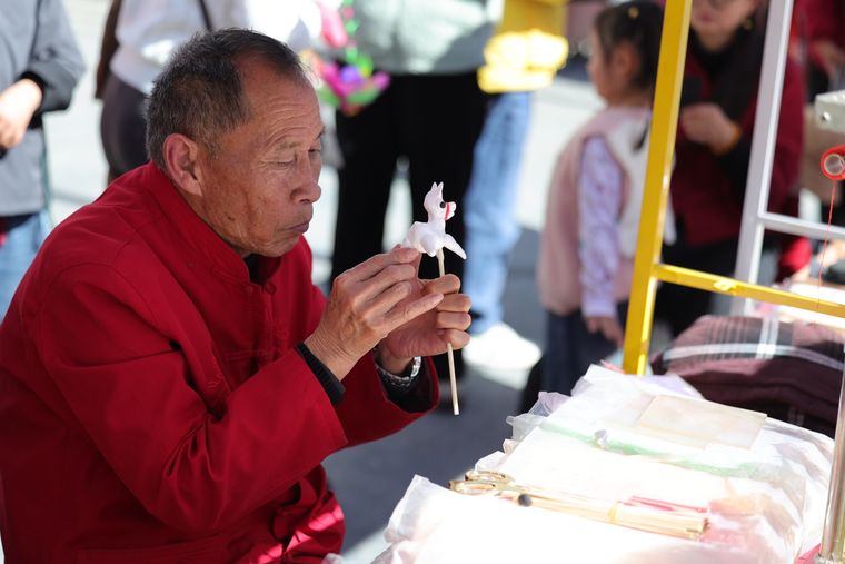 活动现场同步设置的民俗体验区人头攒动,始终洋溢着浓厚的传统年味。剪影、甲马拓印、捏面人、画糖画、制作冰糖葫芦、漆扇制作、书写春联等多项非遗及传统手工艺体验项目吸引了大量职工及家属参与。大家在非遗传承人和手艺老师的指导下,亲手体验制作,感受传统技艺的魅力,一副副春联、一个个糖画、一把把漆扇,吸引职工及家属踊跃参与,大家亲手制作体验,感受传统技艺魅力,沉浸式体验浓浓年味。