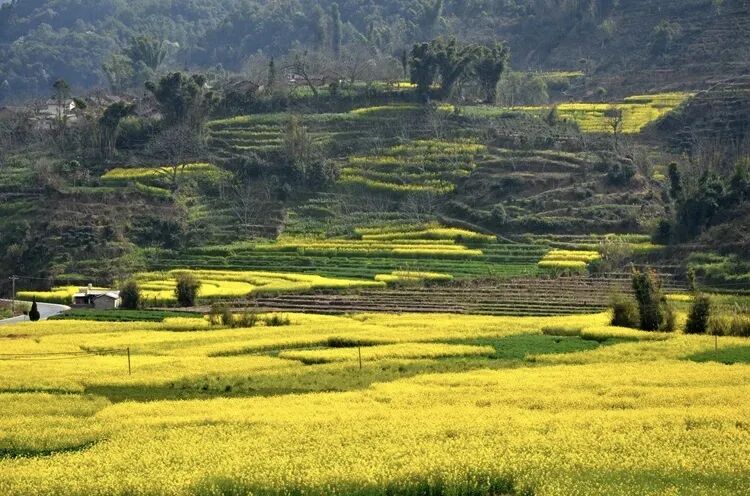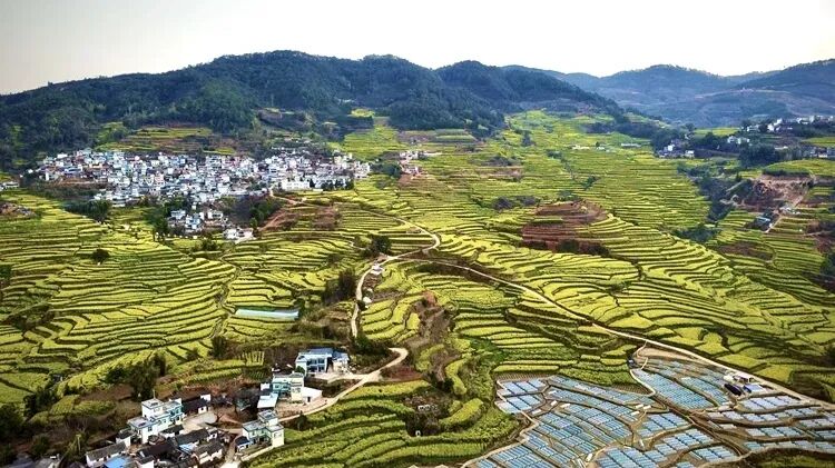 梯田间,花海绵延层叠