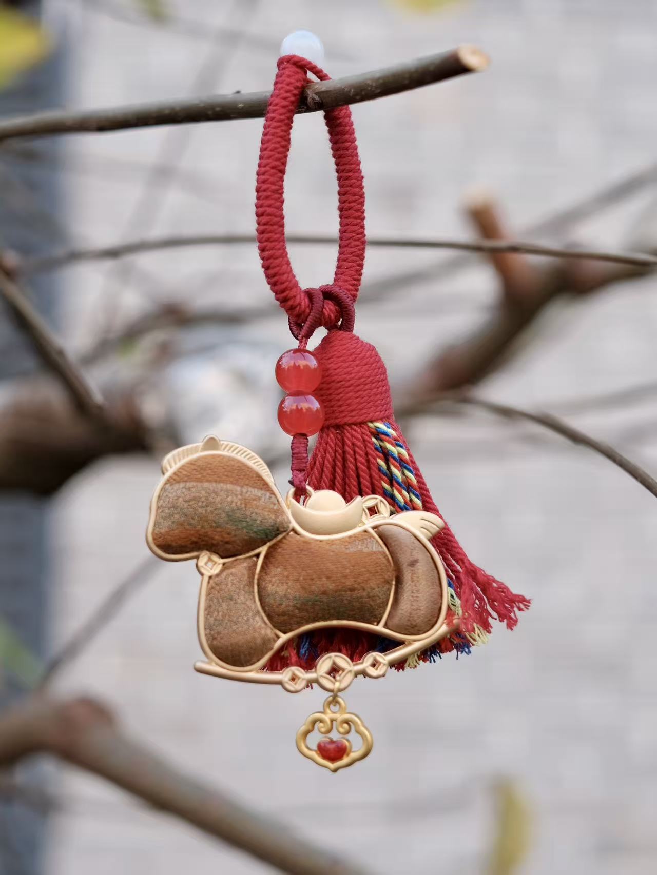一款“马上有钱”挂饰,巧妙利用香云纱余料制成,小马造型憨态可掬,马鞍饰以缠枝莲纹与金元宝流苏,寄托新年财富愿望。匠曼延品牌董事长兼艺术总监李曼娜表示,通过加入铜钱纹样、喜庆红色等年轻化设计,让非遗的美好寓意更贴近日常生活,相关文创产品订单量已超1000件,同比增长超过50%。