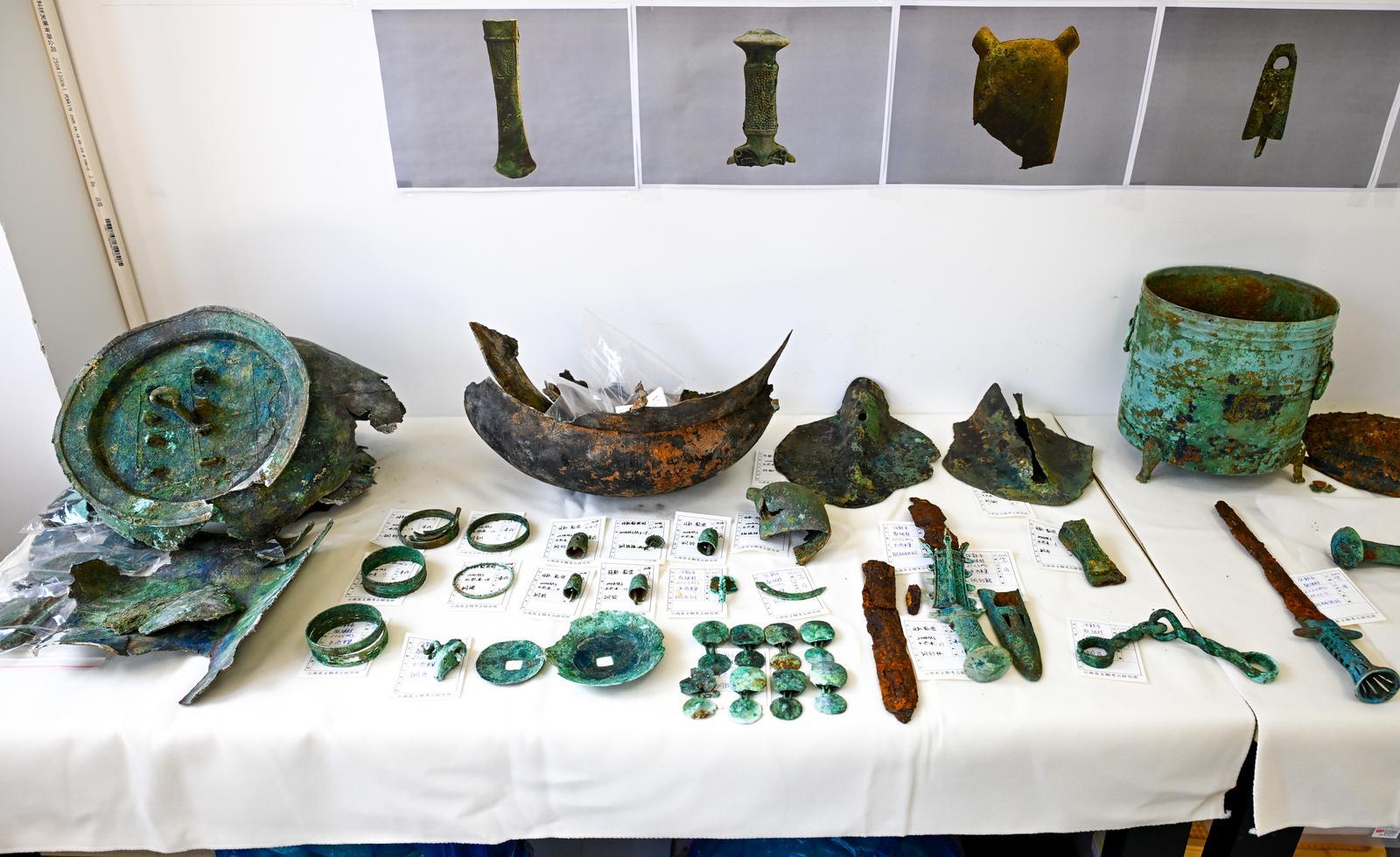 出土文物还呈现多元文化交融的特点。云南省文物考古研究所研究员胡长城分析,如青铜錞于多见于巴蜀地区,铜樽具有中原或长江中游文化特征,镂空一字格剑则与夜郎文化相关,这些器物的共存是当时区域间文化交流与人员往来的实物证据。