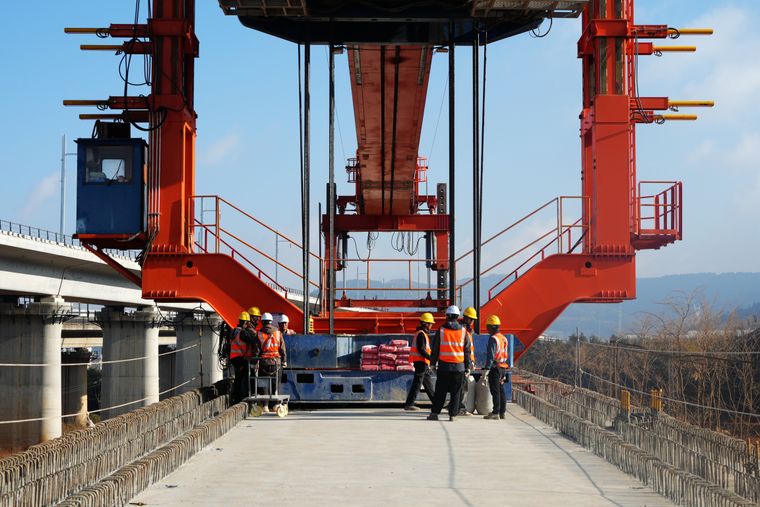 昆明信息港讯 记者上官艳君 2月3日,记者从中国铁路昆明局集团有限公司(下称“国铁昆明局”)获悉,2月3日9时45分,在位于云南省昆明市呈贡区的渝昆高铁施工现场,随着最后一榀箱梁精准架设落位,渝昆高铁桥梁建设全部完成,为后续铺轨及站后工程施工奠定了坚实基础,标志着渝昆高铁建设进入全面冲刺阶段。
