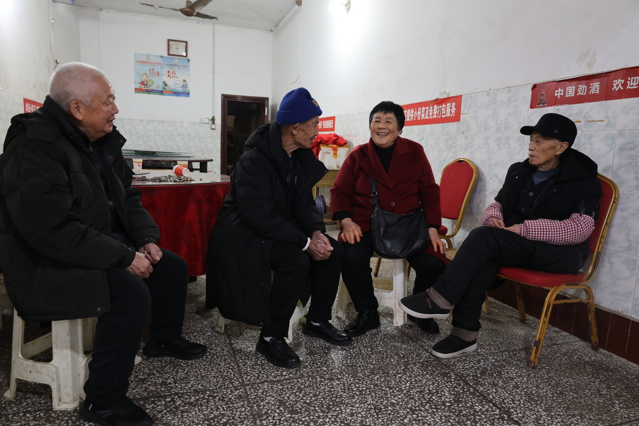 像他这样从外村“投奔”来的,有5位。如今,每天固定来吃饭的老人有19位,每顿要坐满两大圆桌。开饭前,店里就热闹起来。有人早早候着聊天,有人熟门熟路进后厨帮着摘菜。