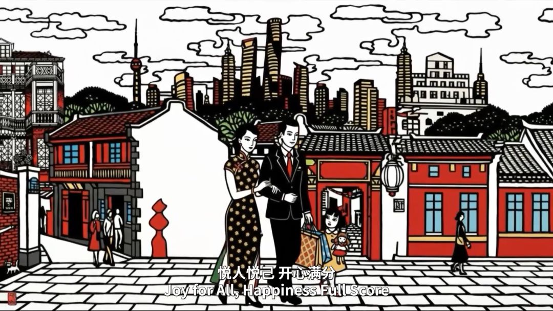 由上海市发展和改革委员会出品、文汇报社融媒体视频聚合部制作的手绘水墨AI动画《上海Run Up》上线!