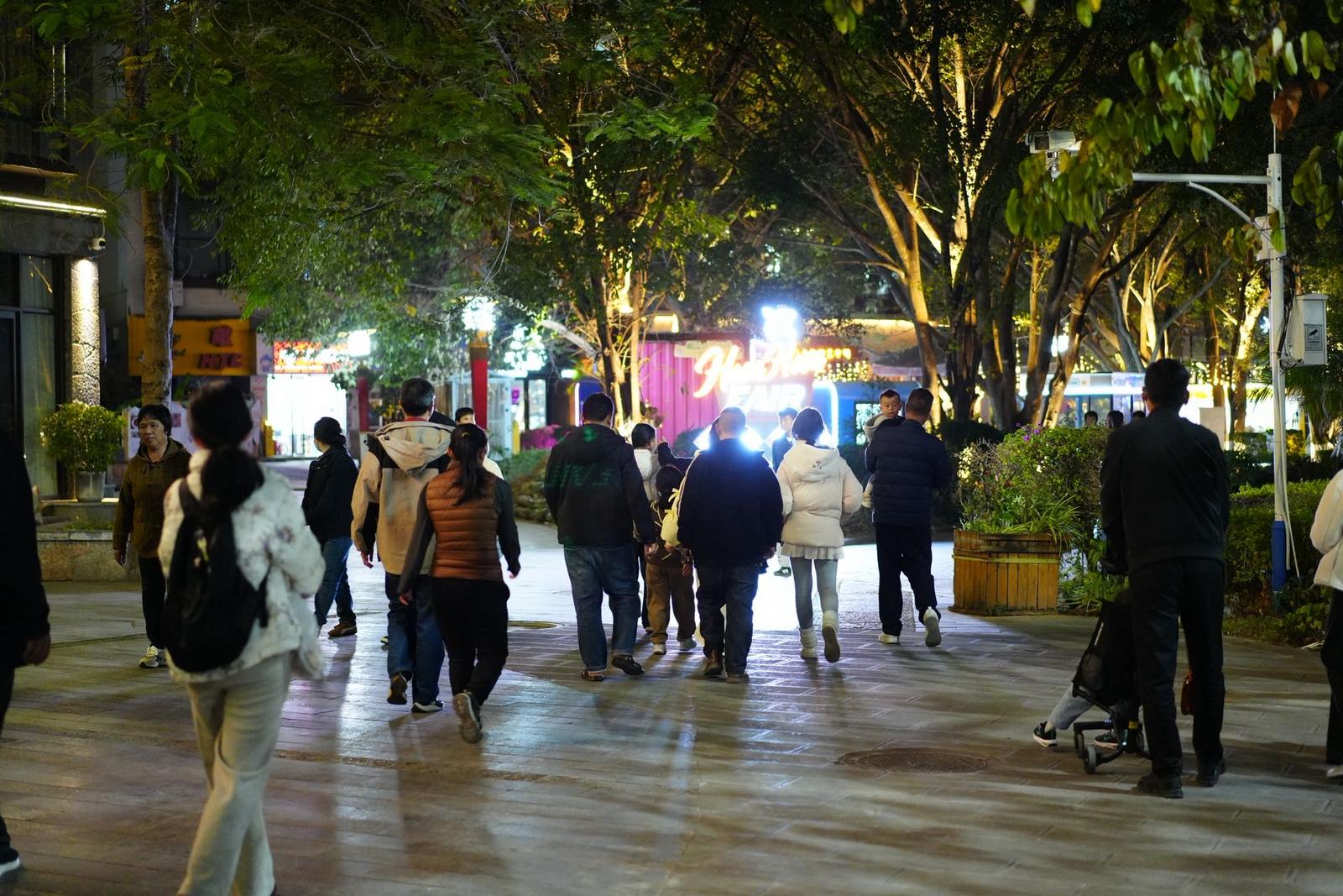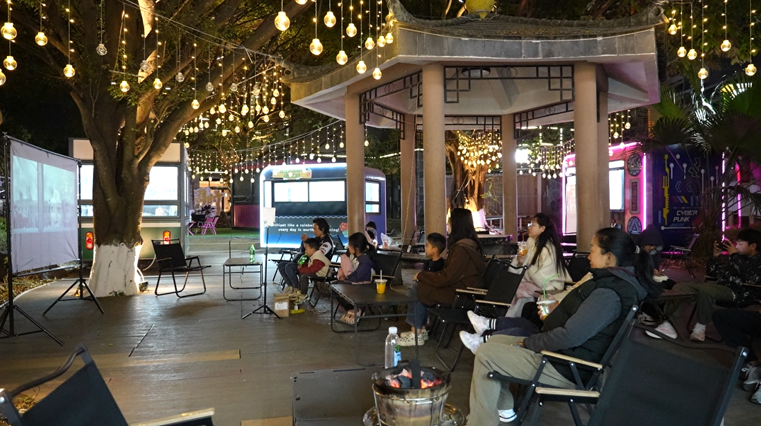 为了方便游客休息,这里还布置了露天电影,伴着暖黄的灯光,既给游客提供了休憩的好去处,也悄悄增添了几分惬意的氛围感。