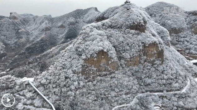 连日来,受强冷空气影响,河北省邯郸市磁县天保寨景区迎来雾凇景观,绵延数里的雾凇长廊徐徐铺展,玉树琼枝、银装素裹。
