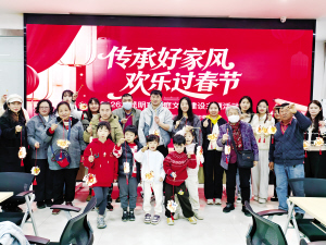 手工制作环节将活动氛围推向高潮。在志愿者指导下,参与者共同制作春节小灯笼,大家创意纷呈,将心意融入作品,一盏盏灯笼承载着对家人的祝福与对美好生活的期许。制作完成后,大家纷纷表示,要把这份亲手制作的祝福带回家中,传递佳节温暖。活动尾声,所有家庭手持作品拍摄“全家福”,镜头定格下这一温馨时刻,也记录下文明与年味交融的美好记忆。