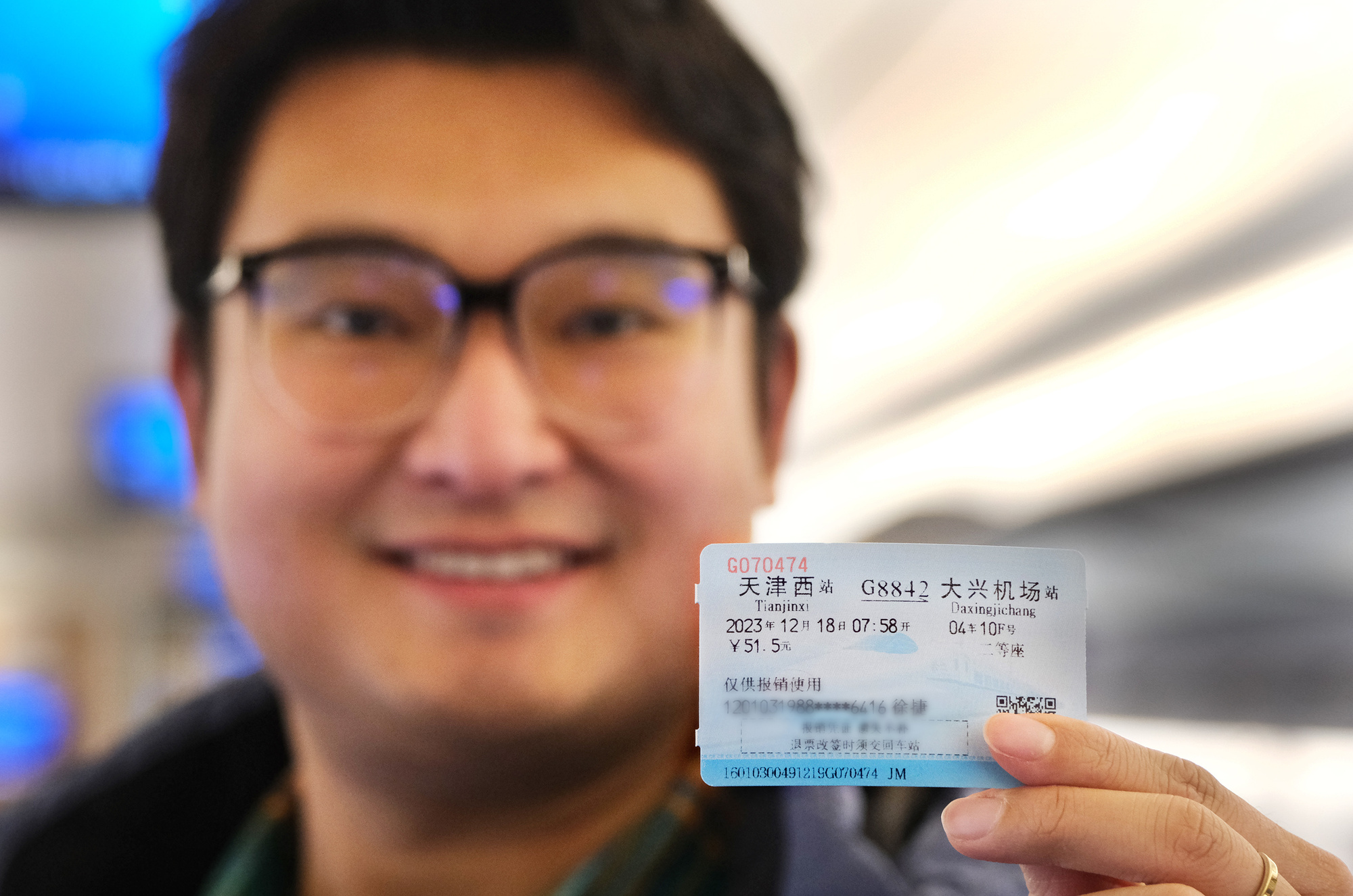 铁路迷体验首趟津兴城际列车(央广网发 杨宝森 摄)