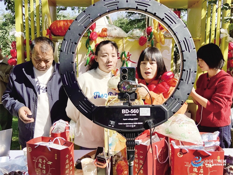 甘肃省2025年中国农民丰收节上电商班学员直播卖农产品。 □资料照片