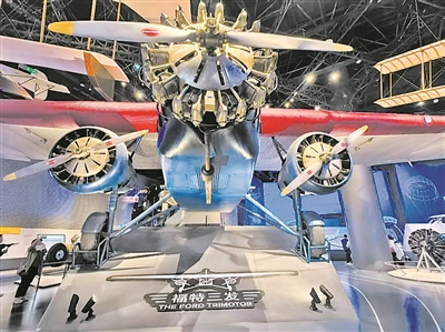 “飞行探秘”展区展出的5-AT型号福特三发飞机等比复原模型。