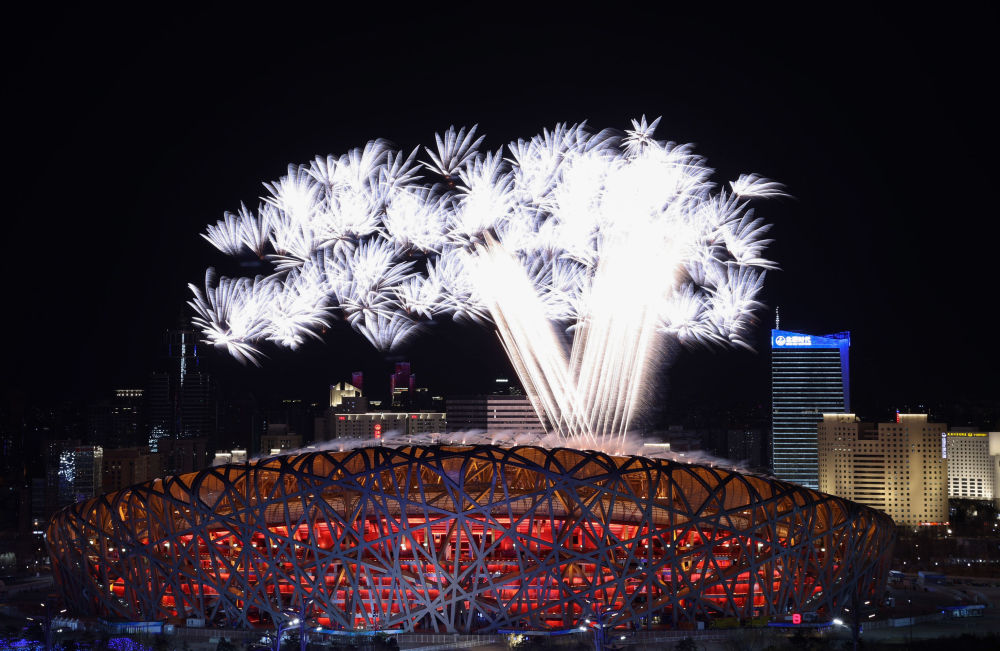 “迎客松”绽放“鸟巢”夜空